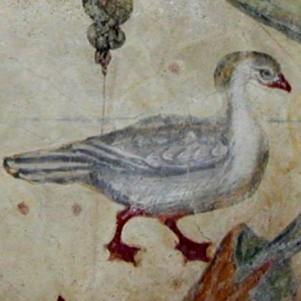 Una vez traspasada la cancilla que cerraba este espacio con el exterior, en el pequeño atrio de entrada, y ocultos a la directa mirada desde el exterior existen otros relieves más sorprendentes, a la izquierda y derecha dos aves zancudas similares a un avestruz. Una de ellas, las más oculta a la vista, (este relieve es observable desde el interior, en la posición en donde durante el rito se emplazaba el sumo sacerdote) se encuentra encaramada a una piedra sobre una esbelta columna. Ambas imágenes hacen referencia a Rhea la diosa Griega, que era representada por un avestruz, el ave de mayor tamaño conocida en la antigüedad.